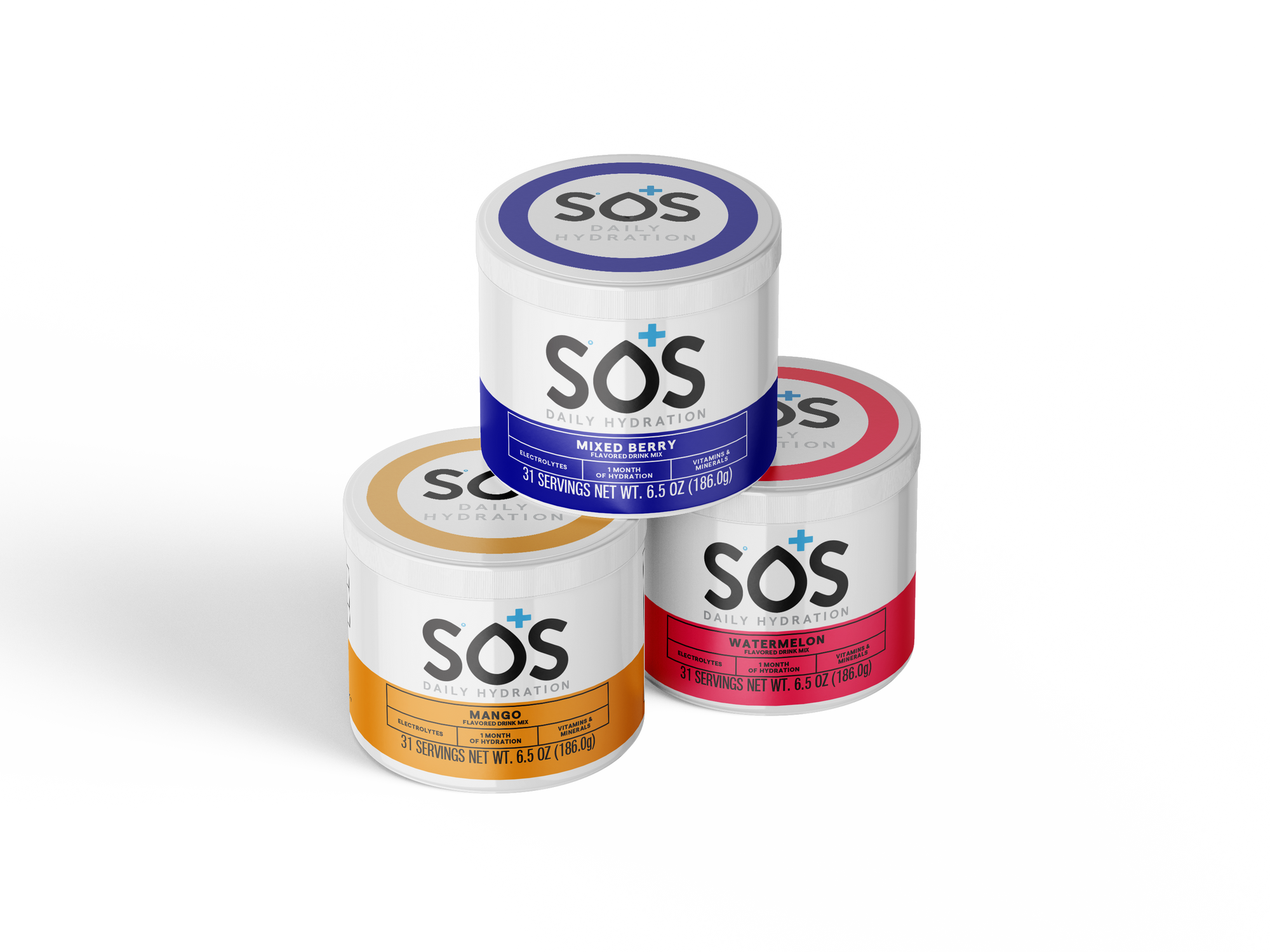 SOS is an advanced and proprietary “oral rehydration solution” - a long phrase for a scientific solution with the right balance of sodium and electrolytes. We balance molecules of sugar to sodium to ensure rapid hydration – up to 4x faster than plain ole water. Instead of sugar-heavy sports drinks or standard sodium-based electrolytes, we use science to get the best of both. In short, SOS makes your water work faster and has happy electrolytes to make your cells function.